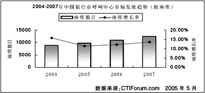 根據(jù)CTI論壇預(yù)測(cè),到2007年,銀行業(yè)呼叫中心的座席總數(shù)將達(dá)到12500個(gè),累計(jì)投資額將達(dá)到70億元。2005年到2007年的投資額復(fù)合年平均增長(zhǎng)率為14.86%。未來(lái),銀行業(yè)在未來(lái)三年內(nèi)的發(fā)展穩(wěn)定,并以較高速度增長(zhǎng)。