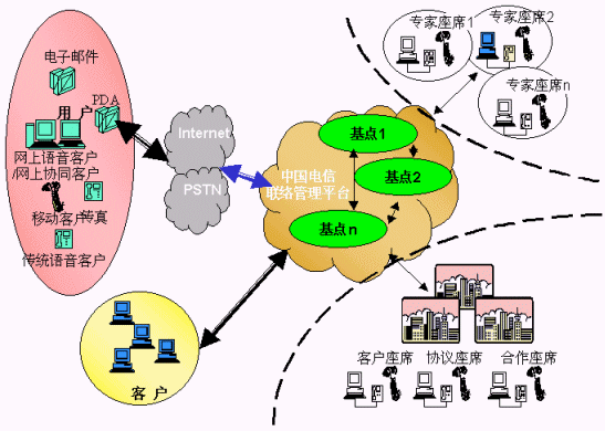 電信運(yùn)營商提供的用戶、客戶、電信公司的統(tǒng)一的聯(lián)系平臺(tái),各類客戶通過使用聯(lián)系平臺(tái),向其用戶提供方便的、不受時(shí)間、地域和媒體的限制的"3A"級聯(lián)絡(luò)服務(wù),用戶、客戶、電信平臺(tái)間的聯(lián)絡(luò)能得到有效路由、管理、品質(zhì)保障;聯(lián)絡(luò)中心通過將分布在各地、各種媒體、各種形式的資源整合在一起實(shí)現(xiàn)客戶服務(wù)增值,創(chuàng)造無限商機(jī),有效提升客戶聯(lián)絡(luò)中心的價(jià)值,使用戶得到最貼身的、個(gè)性化的、專業(yè)的服務(wù),為客戶提供成本更低、資源更豐富、服務(wù)更專業(yè)、具備強(qiáng)大商業(yè)智能的產(chǎn)品營銷及服務(wù)、電信運(yùn)營商則開發(fā)大量的增值服務(wù)、產(chǎn)生更多的利潤增長空間、更多忠實(shí)的客戶,實(shí)現(xiàn)三方面共同成功。
