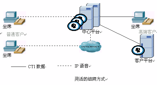 中心系統(tǒng)具備網(wǎng)絡(luò)呼叫中心及靈活的設(shè)備組網(wǎng)方式,必須使用多種媒體結(jié)合技術(shù),平臺(tái)能智能處理來自不同媒體的服務(wù)請求。多媒體包含了固定電話、移動(dòng)電話、傳真、尋呼、短消息、Web、Email、視頻、PDA等多媒體。
