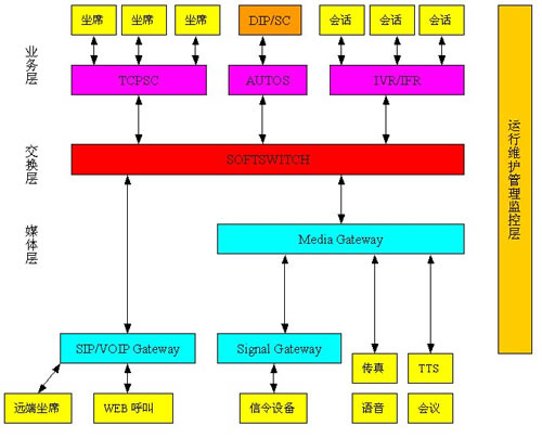 2003 Server操作系統(tǒng)上的平臺軟件實現(xiàn)CallCenter所需的功能:ACD,CTI,IVR。CT Ways與傳統(tǒng)CallCenter平臺的在軟件方面的最大區(qū)別是平臺軟件運行在網(wǎng)格計算環(huán)境下,TCP/IP作為網(wǎng)絡通信協(xié)議。在硬件方面的區(qū)別是IVR硬件資源可與信令及交換資源合用。