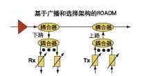 基于廣播和選擇結(jié)構(gòu)的ROADM包括簡單的兩端口耦合器和可調(diào)濾波器(見圖1)。這種設(shè)備允許所有節(jié)點看到所有業(yè)務流,因此業(yè)務流可以下路到任意或者所有節(jié)點,從而通過軟件可以立即進行重新配置。
