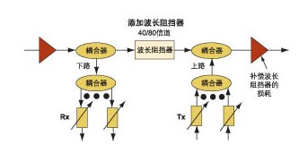圖2當帶寬增加需要波長重用時,可添加波長阻擋器到需要的節(jié)點上。