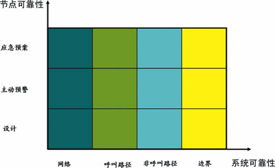 呼叫路徑的節(jié)點可靠性分析包括以下3個層次,即節(jié)點的設(shè)計可靠性、節(jié)點主動預(yù)警能力、節(jié)點的故障應(yīng)急預(yù)案。