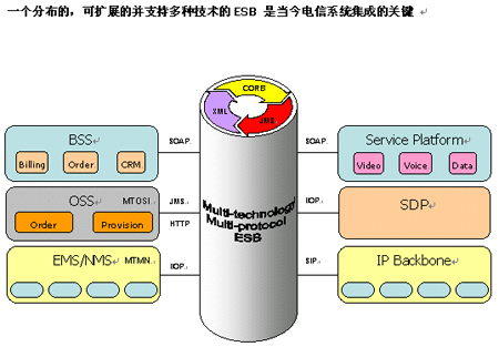 (例如, 其它的 OSS 或BSS 服務)。 這個“軟件總線”就是我們所說的Enterprise Service Bus (ESB), “enterprise”