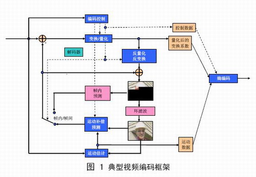 AVS視頻與MPEG標(biāo)準(zhǔn)都采用混合編碼框架(見圖1),包括變換、量化、熵編碼、幀內(nèi)預(yù)測、幀間預(yù)測、環(huán)路濾波等技術(shù)模塊,這是當(dāng)前主流的技術(shù)路線。AVS的主要創(chuàng)新在于提出了一批具體的優(yōu)化技術(shù),在較低的復(fù)雜度下實現(xiàn)了與國際標(biāo)準(zhǔn)相當(dāng)?shù)募夹g(shù)性能,但并未使用國際標(biāo)準(zhǔn)背后的大量復(fù)雜的專利。AVS-視頻當(dāng)中具有特征性的核心技術(shù)包括:8x8整數(shù)變換、量化、幀內(nèi)預(yù)測、1/4精度像素插值、特殊的幀間預(yù)測運動補償、二維熵編碼、去塊效應(yīng)環(huán)內(nèi)濾波等。