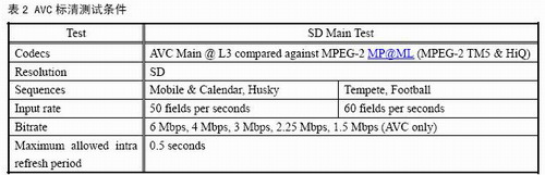 鑒于AVC的編碼效率能夠達(dá)到MPEG-2的2倍,我國有關(guān)測試機構(gòu)在測試AVS時,通常把AVS視頻的碼率也設(shè)在MPEG-2典型碼率的二分之一或更低,也就是測試AVS編碼效率是MPEG-2的2倍或更高的情況下的AVS視頻的編碼質(zhì)量是否能夠廣播要求。