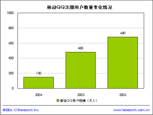近兩年移動QQ的市場規(guī)模迅速擴大,iResearch研究結(jié)果顯示2006年移動QQ用戶規(guī)模達到680萬人,移動QQ所帶來的現(xiàn)金收入成為騰訊上市公司最重要的收入之一。移動IM與互聯(lián)網(wǎng)IM最大的不同在于產(chǎn)業(yè)鏈移動運營商的參與。艾瑞認(rèn)為互聯(lián)互通是移動IM產(chǎn)業(yè)整合和發(fā)展必然趨勢。
