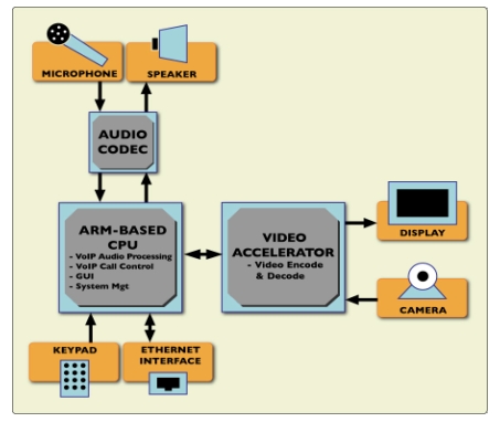 自從第一代的IP可視電話推出以來(lái),通用應(yīng)用處理器的處理能力已經(jīng)提高到能將所有通常用DSP實(shí)現(xiàn)的語(yǔ)音處理器任務(wù)由應(yīng)用處理器實(shí)現(xiàn)。特別對(duì)于Wi-Fi可視電話市場(chǎng)來(lái)說(shuō),這是一個(gè)非常重要的進(jìn)步,因?yàn)闊o(wú)線連接的設(shè)備基本的需求是降低功耗,最大化電池壽命。
