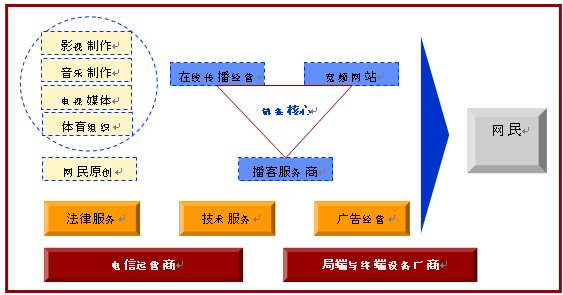 對于互聯(lián)網(wǎng)來講,網(wǎng)絡(luò)視頻代表網(wǎng)絡(luò)內(nèi)容展現(xiàn)形式的變革,而這種變革將帶動一個產(chǎn)業(yè)鏈條的發(fā)展,同時產(chǎn)業(yè)鏈條各個環(huán)節(jié)也會反過來制約網(wǎng)絡(luò)視頻的發(fā)展。2006年以前的中國網(wǎng)絡(luò)視頻發(fā)展處于一個初級階段,聚集網(wǎng)民注意力,形成網(wǎng)民對網(wǎng)絡(luò)視頻內(nèi)容的瀏覽習(xí)慣是這個階段網(wǎng)絡(luò)視頻發(fā)展的核心。但是因為商業(yè)模式的不成熟,網(wǎng)絡(luò)視頻盈利能力弱的基本原因,產(chǎn)業(yè)鏈條中的多個環(huán)節(jié)都成了抑制網(wǎng)絡(luò)視頻發(fā)展的因素。例如:寬頻形式對網(wǎng)絡(luò)資源的要求一方面加大了寬頻內(nèi)容運(yùn)營的成本,另一方面對網(wǎng)民終端的網(wǎng)絡(luò)條件要求也明顯高于以前的網(wǎng)絡(luò)條件,而這些問題要求電信運(yùn)營商既要降低基礎(chǔ)網(wǎng)絡(luò)資源的價格又要提高網(wǎng)絡(luò)資源的質(zhì)量,這些工作和讓步短時間內(nèi)電信運(yùn)營商很難完成,寬頻內(nèi)容運(yùn)營商的運(yùn)營成本就保持居高不下而網(wǎng)民的網(wǎng)絡(luò)視頻效果就差強(qiáng)人意了。像這樣充滿著矛盾因素的抑制環(huán)節(jié)在整個產(chǎn)業(yè)鏈條中還有很多,因此2006年以前的中國網(wǎng)絡(luò)視頻發(fā)展沒有突破產(chǎn)業(yè)束縛進(jìn)入發(fā)展的快車道。