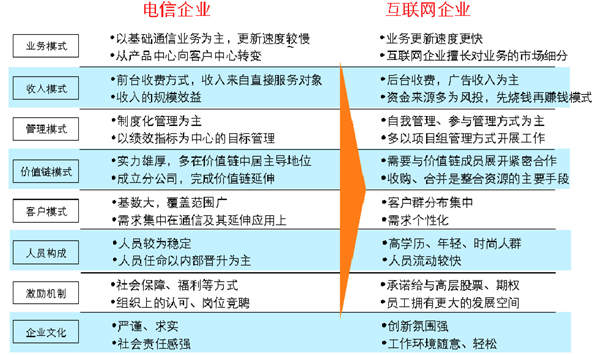 圖:電信企業(yè)與互聯(lián)網企業(yè)差異分析
