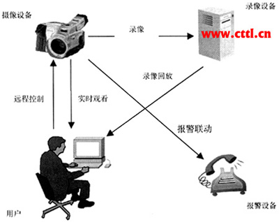 視頻監(jiān)控的基本業(yè)務(wù)功能是提供實(shí)時(shí)監(jiān)視的手段,并對(duì)被監(jiān)視的畫面進(jìn)行錄像存儲(chǔ),以便事后回放。在此基礎(chǔ)上,高級(jí)的視頻監(jiān)控系統(tǒng)可以對(duì)監(jiān)控裝置進(jìn)行遠(yuǎn)程控制,并能接收?qǐng)?bào)警信號(hào),進(jìn)行報(bào)警觸發(fā)與聯(lián)動(dòng)。業(yè)務(wù)功能如圖1所示。