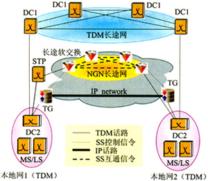 圖2 NGN長途網(wǎng)與TDM長途網(wǎng)結(jié)構(gòu)