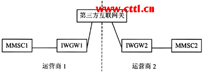 圖2 點(diǎn)對點(diǎn)多媒體消息業(yè)務(wù)網(wǎng)間互聯(lián)網(wǎng)絡(luò)結(jié)構(gòu)示意圖