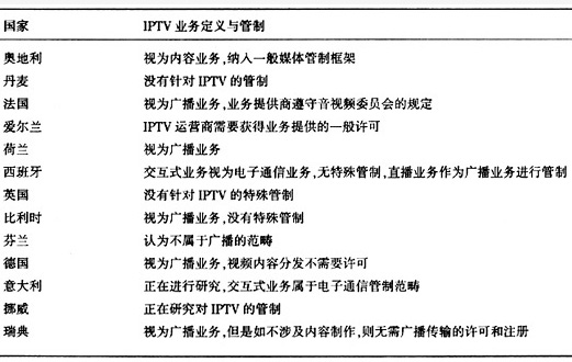 表1部分歐盟國(guó)家IPTV管制的總況
