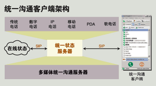 從MSN、QQ提供的語音聊天到曾經(jīng)風(fēng)靡一時的Skype,再到今天思科、北電、微軟、Avaya等推出的統(tǒng)一溝通桌面客戶端系統(tǒng),通信的“最后一公里”發(fā)生了根本的轉(zhuǎn)變。原來為了節(jié)省長途話費而設(shè)計的VoIP,今天和ERP、CRM一樣成為了以提高企業(yè)運營效率為目的的核心生產(chǎn)力系統(tǒng)。統(tǒng)一溝通最令人憧憬的未來是給最終用戶提供一個友好的通信界面:“所有的信息源匯總到一起,而用什么方式來取得這個信息,只要在手邊最方便的工具上輕輕點擊就OK了。”