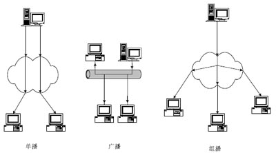 圖1 單播、廣播和組播的傳輸方式