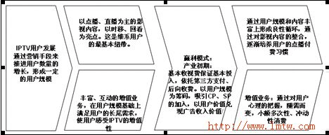 IPTV產(chǎn)業(yè)的發(fā)展,前期是通過其中的特殊功能來吸引用戶,如時移等,但之后,真正能吸引用戶的其中的某項業(yè)務。這在IPTV的宣傳策略上需要重視。