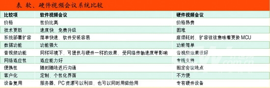 當(dāng)硬件和軟件視頻會議系統(tǒng)這兩種選擇擺在用戶面前時,兩者特點分明,但要走哪條路,還需要分析用戶自身的需求,以“適用”作為標桿。