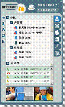 這一系列產(chǎn)品的特點主要是針對國內(nèi)網(wǎng)絡(luò)的特點研發(fā),適應(yīng)能力強,兼容性廣。并且配套提供 IP PBX 綁定的聊天工具,該工具界面(如圖)同QQ、MSN貌似。按所分配的賬戶密碼登陸,可對個人和PBX的彩鈴和分機(jī)狀態(tài)調(diào)整,可以按需要更換指定總機(jī)和交接總機(jī),在小助理上可以使用個人電話通訊錄,支持在線信息群發(fā)和手機(jī)短信群發(fā)等功能。