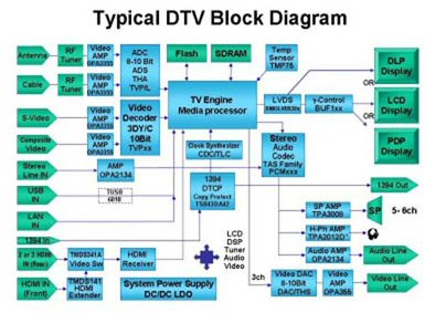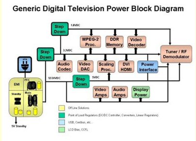 一般來說,數(shù)字電視可以被分解為不到10個(gè)主要的模塊:顯示器(和驅(qū)動(dòng)器)、核心媒體引擎、音頻編解碼和處理、視頻編解碼和處理、調(diào)諧器、接口模塊和電源。對(duì)每一個(gè)模塊的絕對(duì)性能要求由你最喜歡的座位的舒適體驗(yàn)的性能水平來定義。