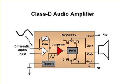 在音頻解決方案中進(jìn)行折衷與音頻處理性能、音頻輸出功率、熱耗散和整體的功耗有關(guān)。傳統(tǒng)的音頻方案由兩到三個(gè)受AB類音頻功率放大器驅(qū)動(dòng)的揚(yáng)聲器構(gòu)成。然而,相對(duì)于它的整個(gè)音頻輸出而言,AB類放大器的工作固有地生成大量的熱。這些積聚起來的高溫因?yàn)樾枰蟮纳崞瑏砩l(fā)熱量,所以,在大多數(shù)薄形狀因子的平面電視中禁止采用AB類放大器。為了解決這個(gè)問題,業(yè)界采用了D類放大器技術(shù)(圖3)。目前,輸出場(chǎng)效應(yīng)三極管(FET)可以在截止區(qū)與飽和區(qū)之間切換,從而提供比AB類放大器更高的效率。現(xiàn)有的音頻解決方案容許你完全利用數(shù)字信號(hào)路徑。這不僅僅最大化音頻效率,而且,它們也提供有效的處理和大于110dB的信噪比(SNR)。