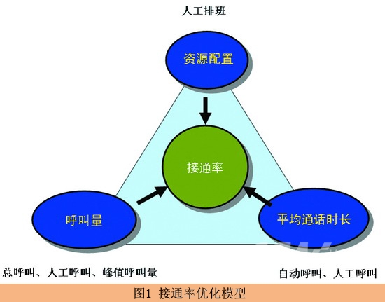 根據(jù)上面的分析,可以設(shè)計(jì)出呼叫中心接通率優(yōu)化的模型(圖1)。