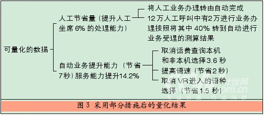 從圖3的分析中可以看出,如果人工服務(wù)采取1項(xiàng)措施,自動業(yè)務(wù)采取3項(xiàng)措施,則可以得出如下的量化結(jié)果: