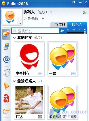 介紹完上面一些鮮為人知的小技巧后,我們總算可以登錄飛信 2008了!看看我添加到好友吧。如圖4所示: