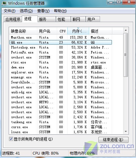 最后我們來(lái)看看大家都很關(guān)心的系統(tǒng)資源占用情況。沒(méi)有比較就沒(méi)有優(yōu)劣,大家從任務(wù)管理器的截圖就可以看出飛信、QQ、MSN這三款主流聊天軟件占用的系統(tǒng)資源多少了(如圖12)。