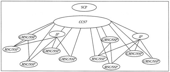 移動(dòng)智能網(wǎng)的組網(wǎng)有多種方案,目前傾向的組網(wǎng)方案是通過(guò)OVERLAY方式,在不改變現(xiàn)有移動(dòng)通信網(wǎng)的條件下,通過(guò)增加有限的SSP,利用特殊號(hào)碼段觸發(fā)智能業(yè)務(wù)的方式來(lái)實(shí)現(xiàn)全網(wǎng)開通智能業(yè)務(wù)的目的。而目標(biāo)網(wǎng)方式則要求把所有MSC端局都升級(jí)成為具有SSF功能的MSC,通過(guò)用戶登記的業(yè)務(wù)簽單信息來(lái)觸發(fā)智能業(yè)務(wù)。其目標(biāo)網(wǎng)的組網(wǎng)圖如圖3所示。