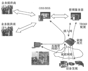 Forum的參考模型,加入了服務提供商,形成了服務提供商、BOSS、ACS、家庭網(wǎng)關(guān)、終端的整體管理架構(gòu)(如圖3所示),并著重研究RMS/ACS與HG之間接口、HG與ED之間接口[6]。