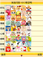 更新完成后再次選擇“發(fā)送閃信”原來空空的屏幕變得熱鬧起來。每個分類里面都充滿了各種或可愛、或搞笑、或生動的形象。選擇一個動畫從屏幕左下的“選項”內(nèi)選擇“發(fā)送”進入發(fā)送的操作界面,所選的動畫在屏幕中間顯著位置不斷的循環(huán)播放,動畫的內(nèi)容一目了然。選擇發(fā)送進入收信人信息輸入屏幕,在收信人位置輸入對方的手機號碼,在附言位置輸入文字然后發(fā)送,等待片刻后一條閃信就發(fā)送成功了。所有的發(fā)送和接收到閃信記錄都可以在“收發(fā)記錄”內(nèi)方便的查找、管理或者直接回復(fù)轉(zhuǎn)發(fā)。