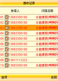收發(fā)記錄里面詳細(xì)的記錄了所發(fā)生和接收的閃信的。選中一條信息,按中建就可以方便的查看這天信息的內(nèi)容(動畫、文字信息、時間一目了然)。選擇左軟鍵里面的選項可以快捷方便的進行“回復(fù)、轉(zhuǎn)發(fā)、刪除”等操作。