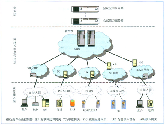 業(yè)務(wù)接入層面呈多元化,包括普通固定電話、小靈通、IP電話、視頻終端、PC軟終端、移動(dòng)終端等。