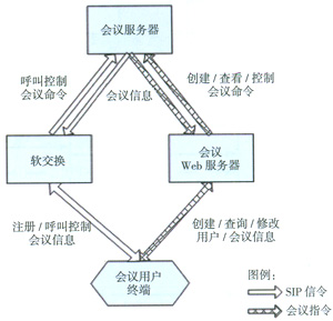 主要由會(huì)議能力服務(wù)器、會(huì)議應(yīng)用服務(wù)器組成。多媒體會(huì)議系統(tǒng)采用會(huì)議應(yīng)用服務(wù)器進(jìn)行業(yè)務(wù)控制,會(huì)議能力服務(wù)器進(jìn)行會(huì)議用戶的媒體接入,實(shí)現(xiàn)了業(yè)務(wù)的控制與承載相分離。