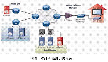 獲取服務器(A-Server,Acquisition Servers)是從本地或者遠端的視頻源實時獲取內(nèi)容并提供視頻組播服務。分發(fā)服務器(Distribution Servers)是用于從運營商網(wǎng)絡中的多個采集點分發(fā)視頻內(nèi)容以保證視頻的快速傳送以及最快的頻道切換時間。在用戶側(cè)的IP機頂盒則運行微軟公司獨有的軟件和協(xié)議以保證最優(yōu)的性能。