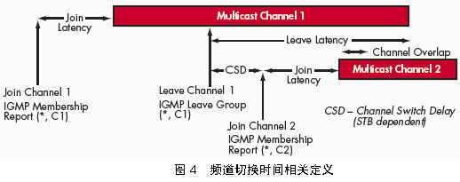 。6)頻道重疊時間:如果系統(tǒng)頻道切換采取接收到所請求頻道的組播包之后才停止原頻道的組播包的方式,則頻道重疊時間即指接收到所請求頻道的第一個組播包與接收到原頻道的最后一個組播包之間的時間間隔。