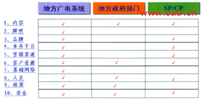 在投資與收益方面,雙方共同出資,成立公司,調(diào)動(dòng)雙方相關(guān)的優(yōu)勢(shì)資源。并且協(xié)調(diào)了與SP/CP、政府、行業(yè)部門等多方面原本復(fù)雜的關(guān)系。能夠增加的收入是點(diǎn)播和直播節(jié)目收費(fèi)。收費(fèi)模式方面增加電視包月費(fèi)、頻道組合費(fèi)。合作分成通過(guò)股份公司分紅。