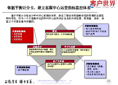 第一,是依據(jù)平衡計分卡原理,建立了客服中心運營指標(biāo)監(jiān)控體系,以實現(xiàn)呼叫中心的規(guī);(jīng)濟(jì)運營。