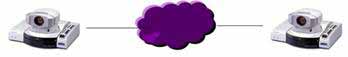點(diǎn)對點(diǎn)視頻會議系統(tǒng)只涉及到兩個會議終端系統(tǒng),其組網(wǎng)結(jié)構(gòu)非常簡單不需要MCU,也不需要增加額外的網(wǎng)絡(luò)設(shè)備,只須在終端系統(tǒng)中系統(tǒng)控制模塊中增加會議管理功能即可實(shí)現(xiàn)。其組網(wǎng)結(jié)構(gòu)見圖所示,圖中控制協(xié)議虛線實(shí)際上并不存在,其內(nèi)容也是通過接口相互傳遞。兩個會議場點(diǎn)(終端系統(tǒng))只須相互撥號呼叫對方并得到對方確認(rèn)后便可召開視頻會議。通信網(wǎng)絡(luò)根據(jù)視頻終端的不同,通信網(wǎng)絡(luò)可以選擇IP廣域網(wǎng)、ISDN(BRI/PRI)、E1、DDN專線、衛(wèi)星線路(V.35)等。
