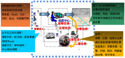 接處警應(yīng)用系統(tǒng)是應(yīng)急聯(lián)動(dòng)中心的核心部分,系統(tǒng)在保證“先進(jìn)、實(shí)用、可靠”的前提下,與全市應(yīng)急聯(lián)動(dòng)單位實(shí)現(xiàn)互聯(lián)互通、信息共享;把接處警系統(tǒng)與GPS、有無線通信、視頻監(jiān)控、預(yù)案指揮等技術(shù)系統(tǒng)有機(jī)的結(jié)合在一起,形成“以計(jì)算機(jī)網(wǎng)絡(luò)為基礎(chǔ),以有線、無線通信為紐帶,以接處警信息傳遞、處理為核心,以資源共享和計(jì)算機(jī)輔助決策為載體的綜合性系統(tǒng)工程”,從而提高應(yīng)急聯(lián)動(dòng)中心的指揮調(diào)度、輔助決策等綜合處置能力,滿足在復(fù)雜條件下指揮、調(diào)度、協(xié)調(diào)、處置城市不同種類和等級的突發(fā)事件的實(shí)戰(zhàn)需要。