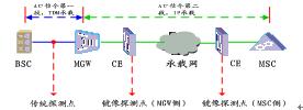 A口信令的第一段為MGW到BSC之間,是傳統(tǒng)的TDM方式,可以為高速鏈或低速鏈,物理承載類型為電口、光口均可,此時(shí)可以采用傳統(tǒng)的信令檢測(cè)方式。第二段為MSC到MGW之間的IP接口(sigtran接口),采用FE的底層傳輸方式,其信令帶寬一般為100M,此時(shí)必須采用IP接口的采集方式(即鏡像技術(shù))。從以上看出,由于目前的軟交換分離架構(gòu),鏡像采集點(diǎn)有兩個(gè),可以是MGW側(cè),也可以是MSC側(cè)。