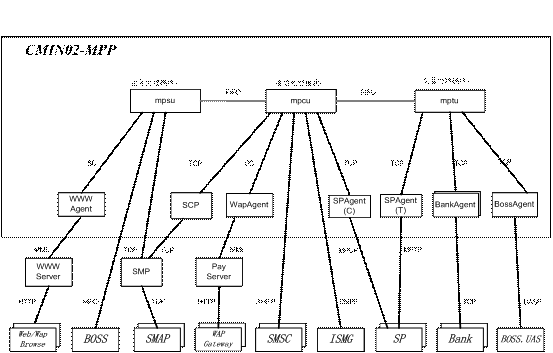 Provider)的交易請求,根據(jù)用戶的賬戶設(shè)置情況,與本地數(shù)據(jù)庫(或銀行、或BOSS系統(tǒng))交互,完成對用戶支付賬戶的扣費(fèi)操作;業(yè)務(wù)受理部分MPSU:完成業(yè)務(wù)受理的功能,處理管理員、營業(yè)廳操作員、或用戶的業(yè)務(wù)管理請求,進(jìn)行相應(yīng)查詢、配置或計(jì)算,并返回結(jié)果;代理部分Agent,例如:WWWAgent,BankAgent等負(fù)責(zé)與各個外部實(shí)體的通信;另外,系統(tǒng)還應(yīng)有輔助模塊用來完成系統(tǒng)各進(jìn)程的守護(hù)、監(jiān)視、控制、以及系統(tǒng)性能數(shù)據(jù)的采集功能。