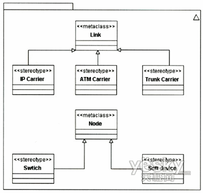 該擴(kuò)展針對Link和Node和兩個元類增加了NGN中關(guān)于承載和節(jié)點的定型。可以根據(jù)需要對該模型作進(jìn)一步擴(kuò)展,如可以增加關(guān)于接入網(wǎng)承載的定型等。