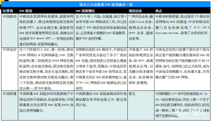 國內三大運營商已經(jīng)開始積極試點和部署IMS商用網(wǎng)絡,樹立全業(yè)務競爭市場的優(yōu)勢。