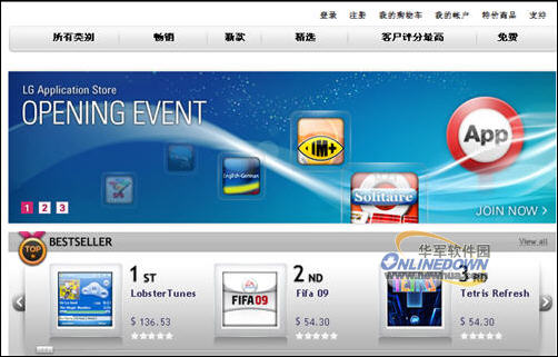 2009年7月14日,LG宣布正式推出測試版的手機應用程序商店;同一天,蘋果發(fā)布消息稱,其在線應用程序商店已經(jīng)面向77個國家消費者,提供6.5萬種應用,下載量超過15億次。