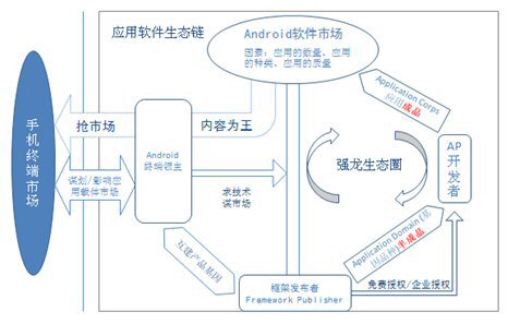 Android終端領主將在Android應用軟件市場起到風向標、領導者的作用。他們就是Android終端領主,這個領域的超級大鱷。他們通過各種方式途徑將框架軟件成品最終送達用戶,在用戶的硬件上得以呈現(xiàn),通過Android終端領主,框架軟件生態(tài)才有價值的循環(huán)回報。價值產(chǎn)生的市場就是眾多硬體廠家、電信運營商家的應用商城。