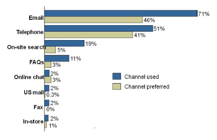 該報(bào)告進(jìn)一步總結(jié)到,60%的網(wǎng)站客戶希望更多互動(dòng)但許多電子商務(wù)企業(yè)無法回應(yīng)電子郵件且不能提供足夠的電話支持。也有很多電子商務(wù)企業(yè)提供電子郵件支持,比如說etoys,但對(duì)于如潮水般洶涌而來的電子郵件聯(lián)絡(luò)他們顯然沒有什么準(zhǔn)備以至于處理結(jié)果符合客戶預(yù)期的郵件少之又少。如果處理的好