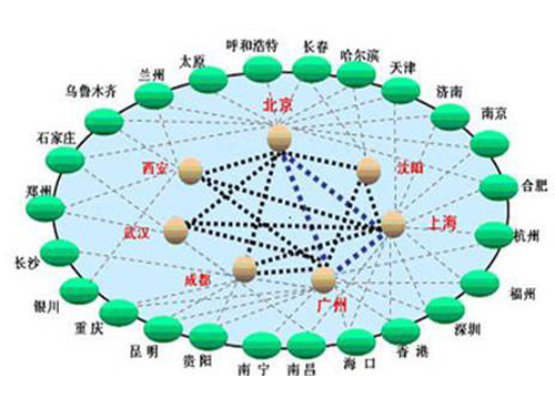 網(wǎng)絡(luò)扁平化概念就適時(shí)提出來了。現(xiàn)在,網(wǎng)絡(luò)扁平化已經(jīng)是運(yùn)營(yíng)商網(wǎng)絡(luò)建設(shè)的主要指導(dǎo)思想了。特別是中國(guó)聯(lián)通,由于歷史原因造成的骨干網(wǎng)節(jié)點(diǎn)并不夠多導(dǎo)致其南北方網(wǎng)絡(luò)品質(zhì)存在一定差異。而扁平化后能很好的解決此問題。下圖為網(wǎng)絡(luò)扁平化示意圖。