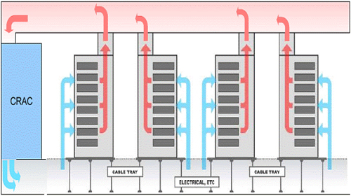 現(xiàn)在,大多數(shù)企業(yè)都在其服務器所在樓層的周圍部署機房空調(diào)(CRAC)裝置來解決數(shù)據(jù)中心產(chǎn)生的熱量。許多公司還采用“熱通道-冷通道”式硬件配置,針對指定的服務器機柜只配置了熱風排出或者冷風吸入。這就產(chǎn)生了對流循環(huán),從而形成冷卻的連續(xù)氣流。然而,雖然這類技術(shù)基本足以應對傳統(tǒng)數(shù)據(jù)中心的需求,但卻往往無法處理云基礎(chǔ)架構(gòu)產(chǎn)生的巨大熱量。因此,公共和私有云環(huán)境通常需要更先進、更強大的冷卻技術(shù)。